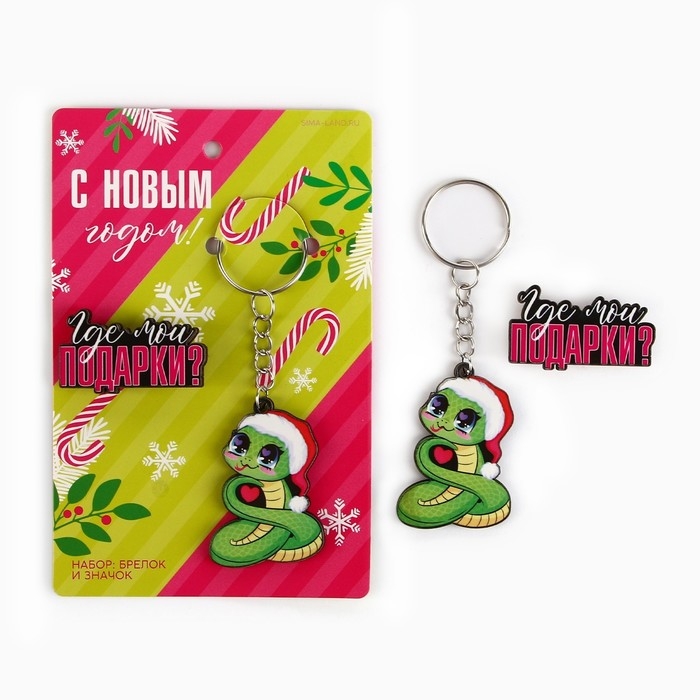 Подарочный новогодний набор «Новый год: Где мои подарки?» значок и брелок