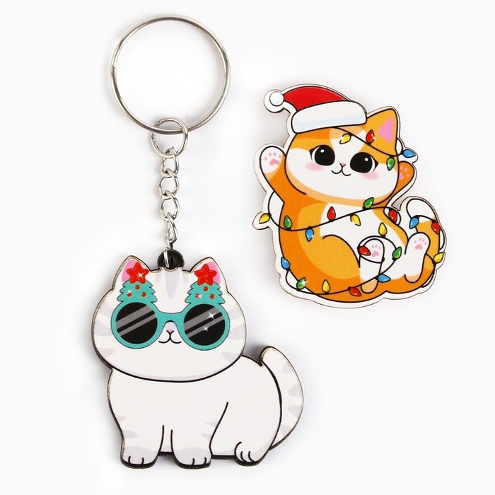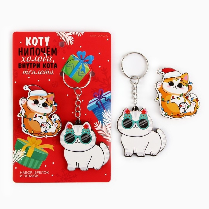 Подарочный новогодний набор «Новый год: Котики» значок и брелок