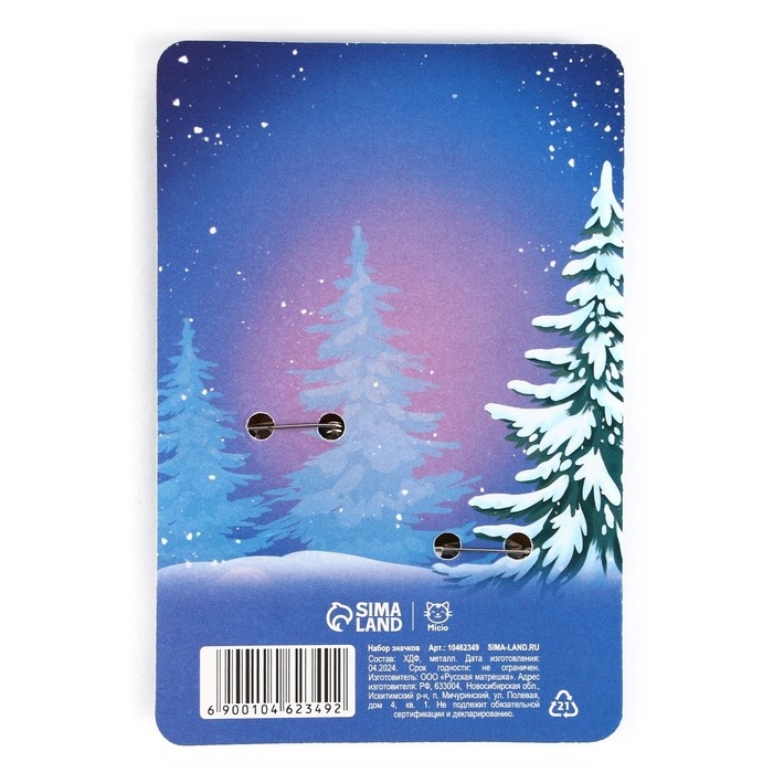Значки новогодние «Новый год: только спокойствие», набор, 2 шт