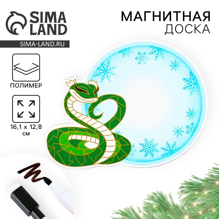 Магнитная доска с полем для записи и фломастером «Змея», на Новый Год, 16,1 х 12,8 см