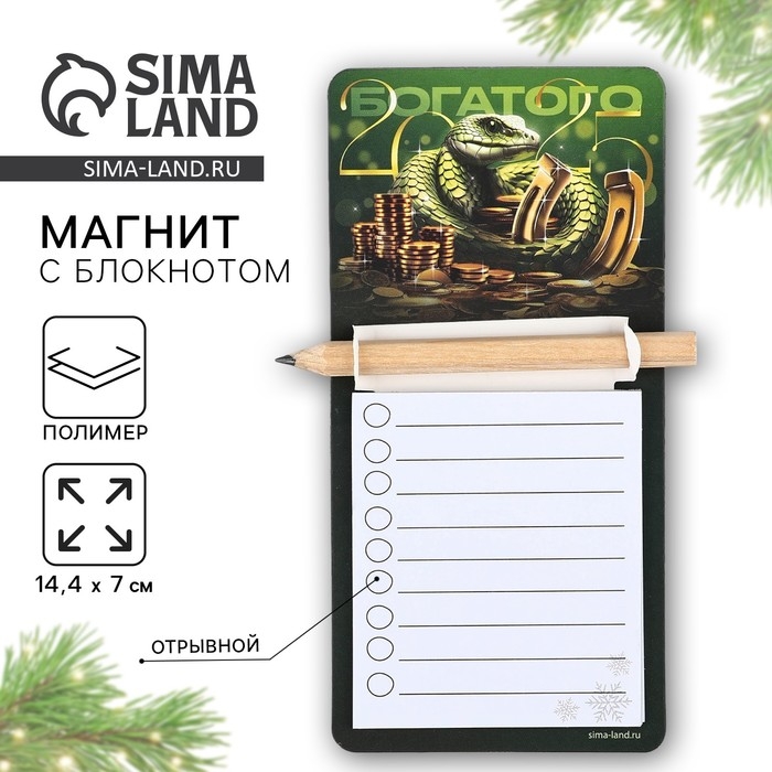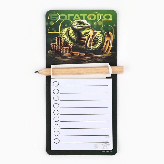 Магнит новогодний с блоком для записи и карандашом «Новый год: Богатого года», 7 х 14,4 см