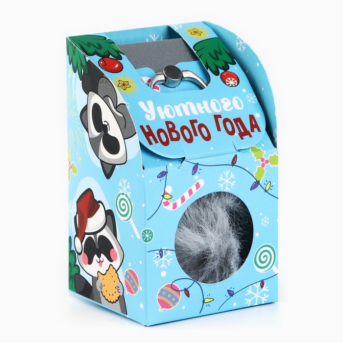 Подарочный набор новогодний брелок-пушистик и кольцо-подставка для телефона «Уютного Нового года!»