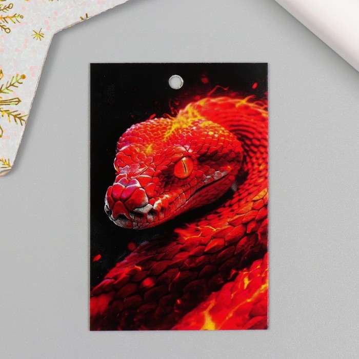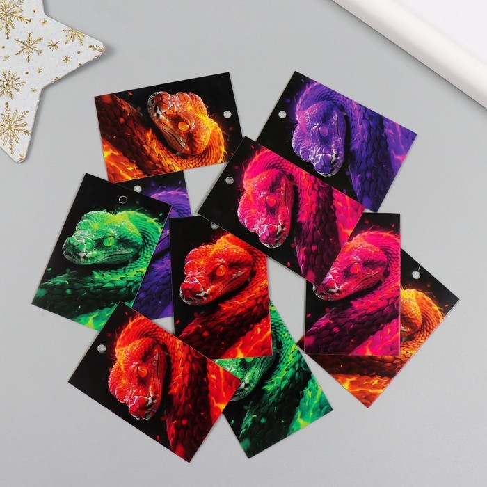 Новогодняя бирка картон "Огненная змея" Новогодний набор 10 шт (5 видов) 4х6 см