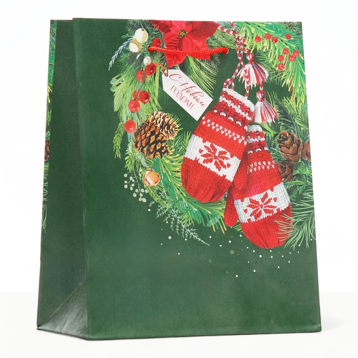 Новый год. Пакет подарочный "Варежки", 18 х 22,3 х 10 см.
