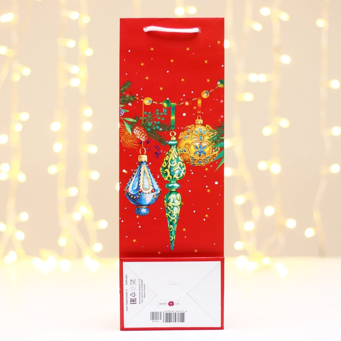 Новый год. Пакет подарочный "Игрушки на ёлку", 12 х 36 х 8,5 см.