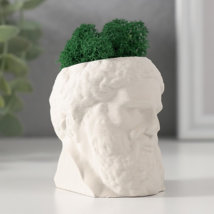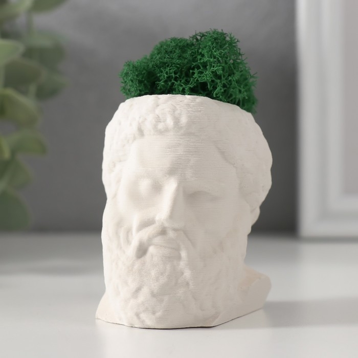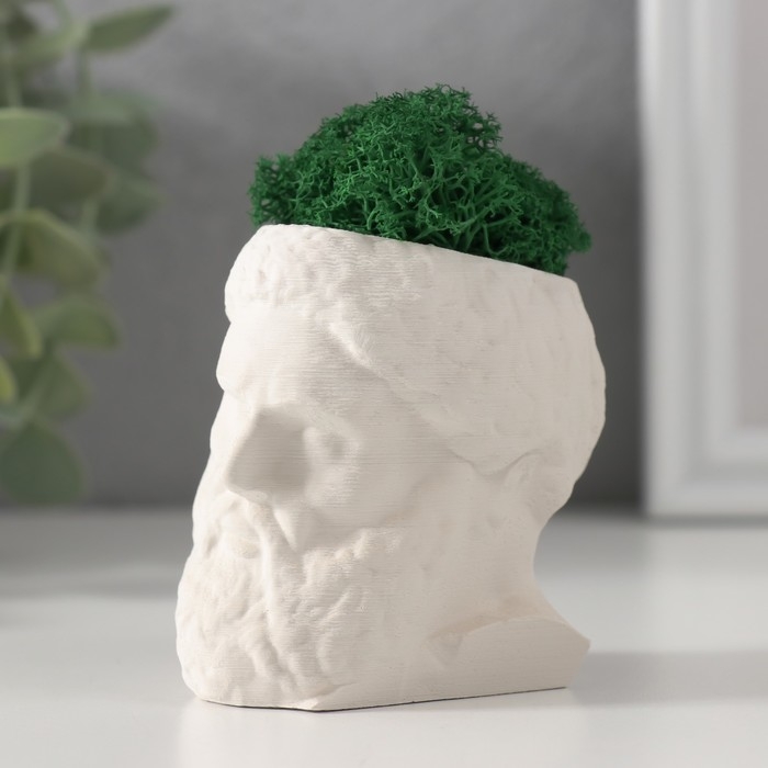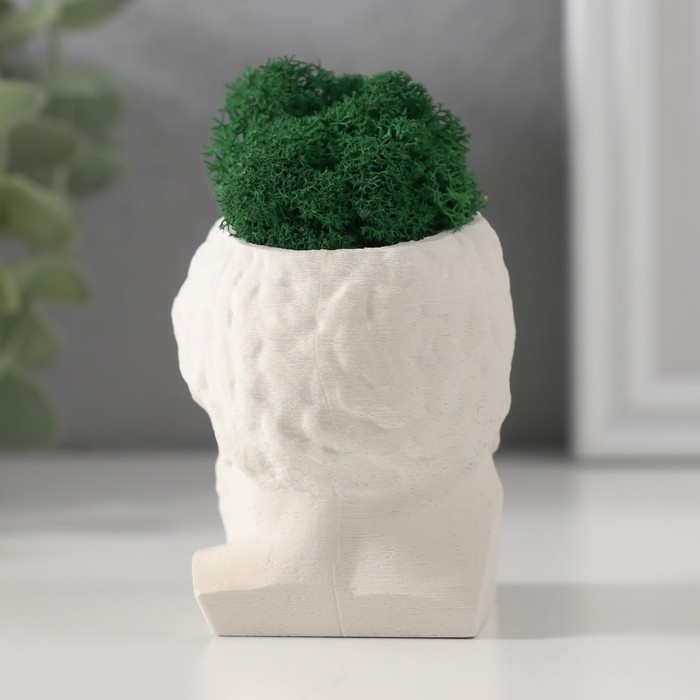 Кашпо бетонное "Прометей" высота 6,5 см, ширина 5 см белый со мхом (мох зелен. стабилизир)