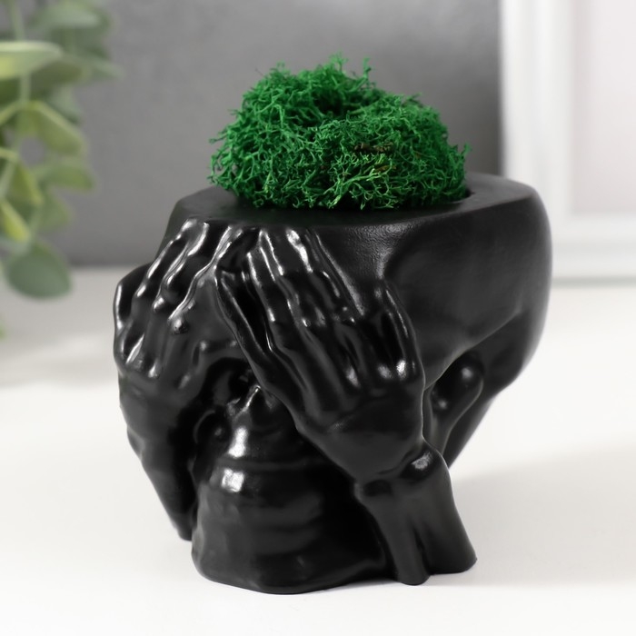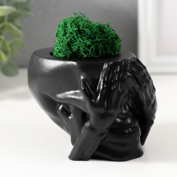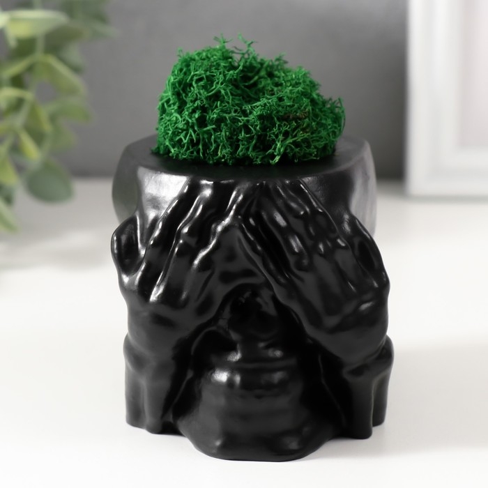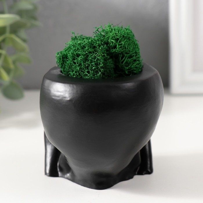 Кашпо бетонное "Череп Прятки" со мхом 7х10 см черный (мох зеленый стабилизированный)