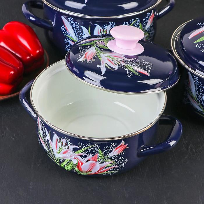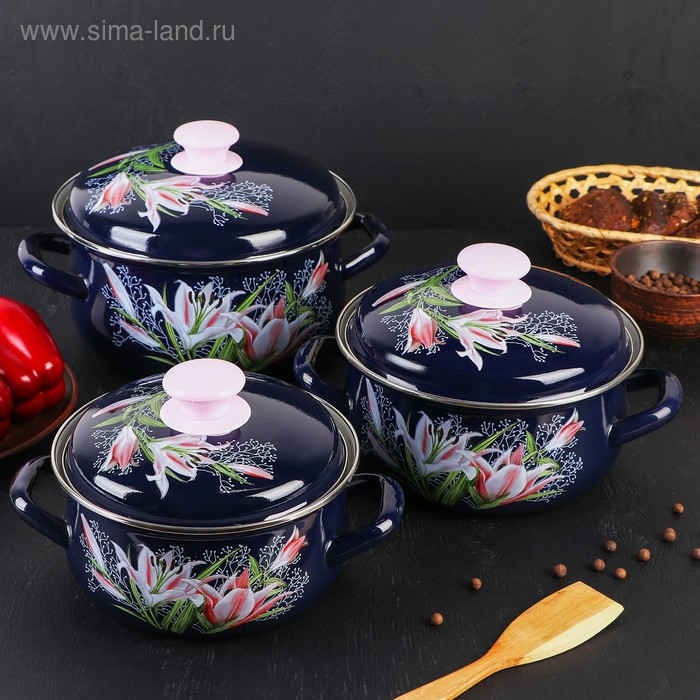 Набор эмалированных кастрюль «Версаль», 3 предмета: 1,5 л, 2 л, 3 л, индукция