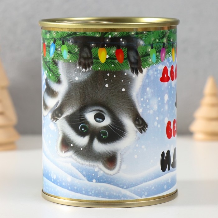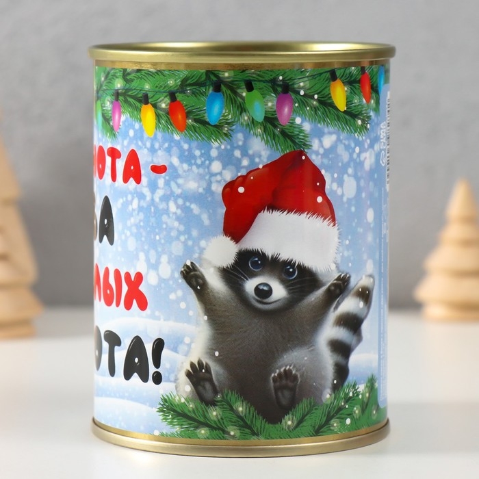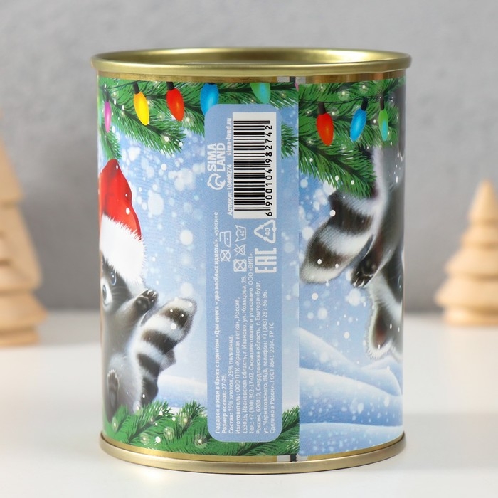 Подарок носки в банке с принтом "Два енота - два веселых идиота (2 пары, мужские и женские)