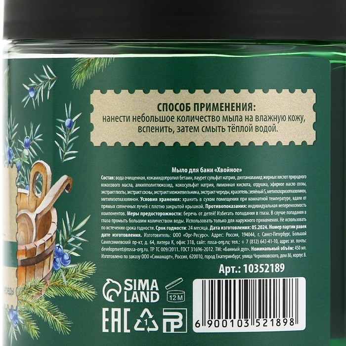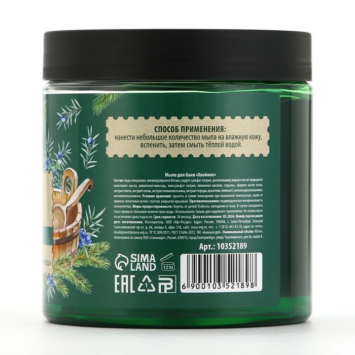 Мыло для бани «Хвойное», 450 мл, с экстрактом пихты, можжевельника и череды, БАННЫЙ ДУХ