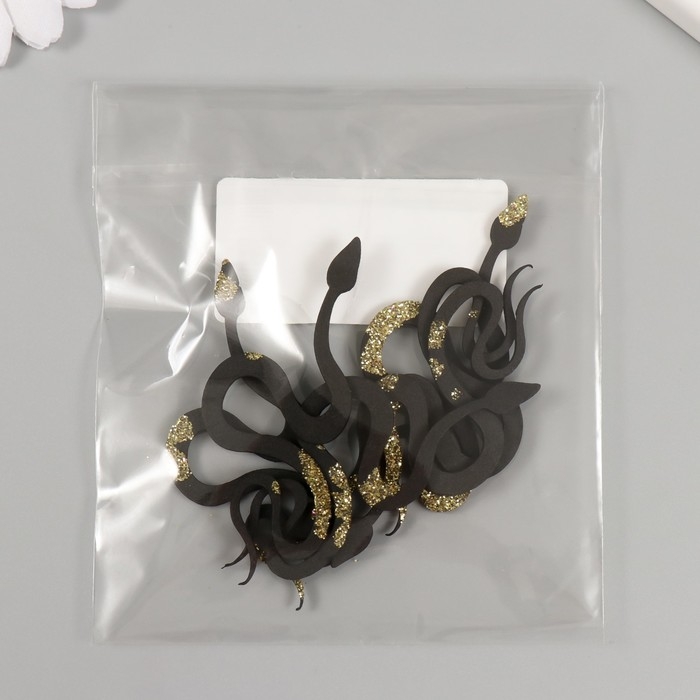 Новогодний декор "Чёрная-Золотая змея" фоамиран, 7 см (Новогодний набор 6 шт)