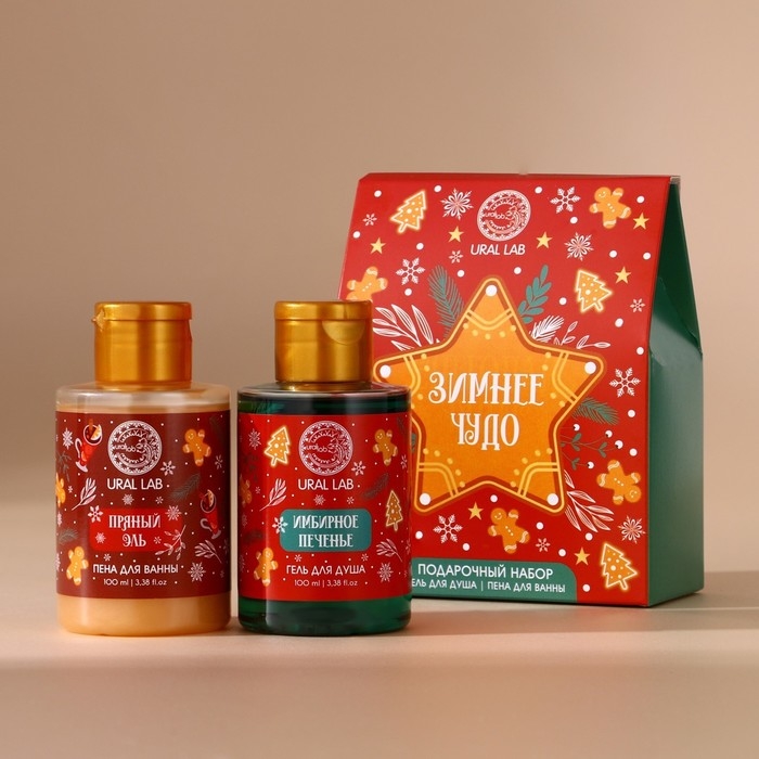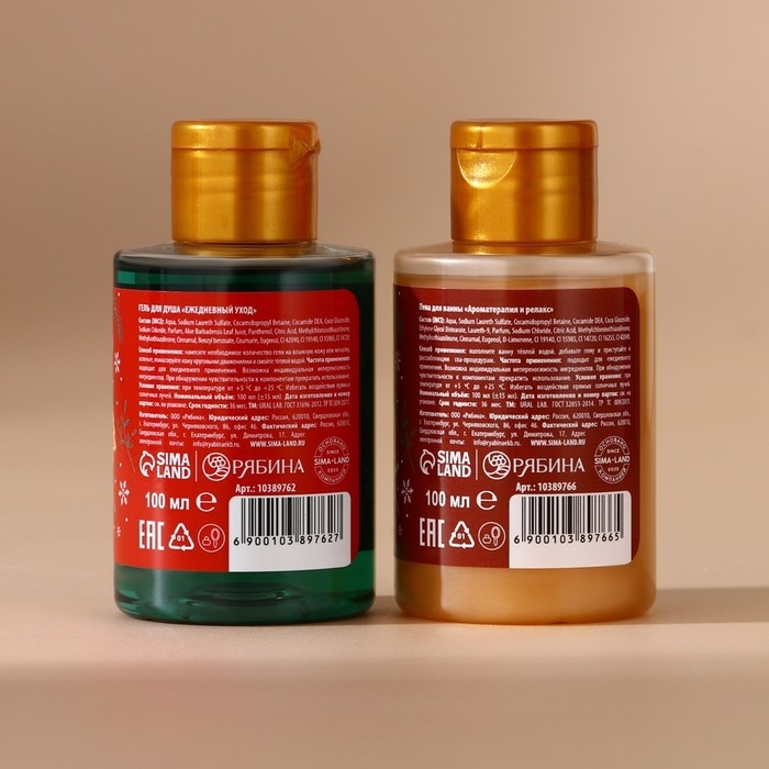 Подарочный набор косметики новогодний, гель для душа и пена для ванны, 2 х 100 мл, Новый Год