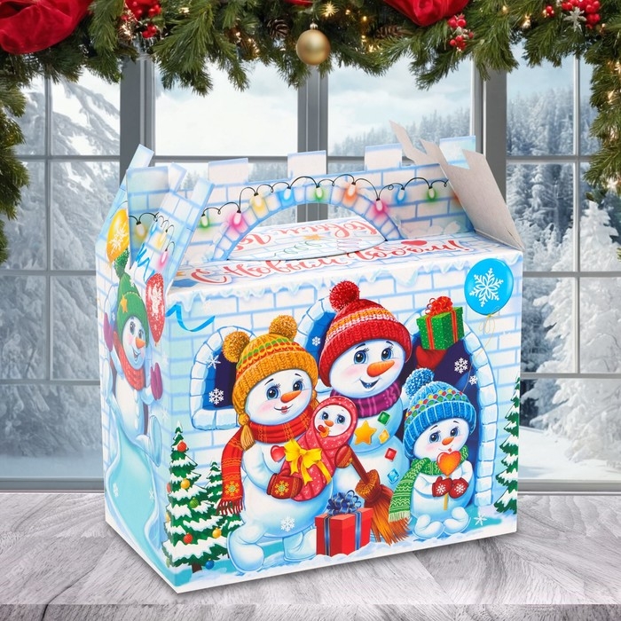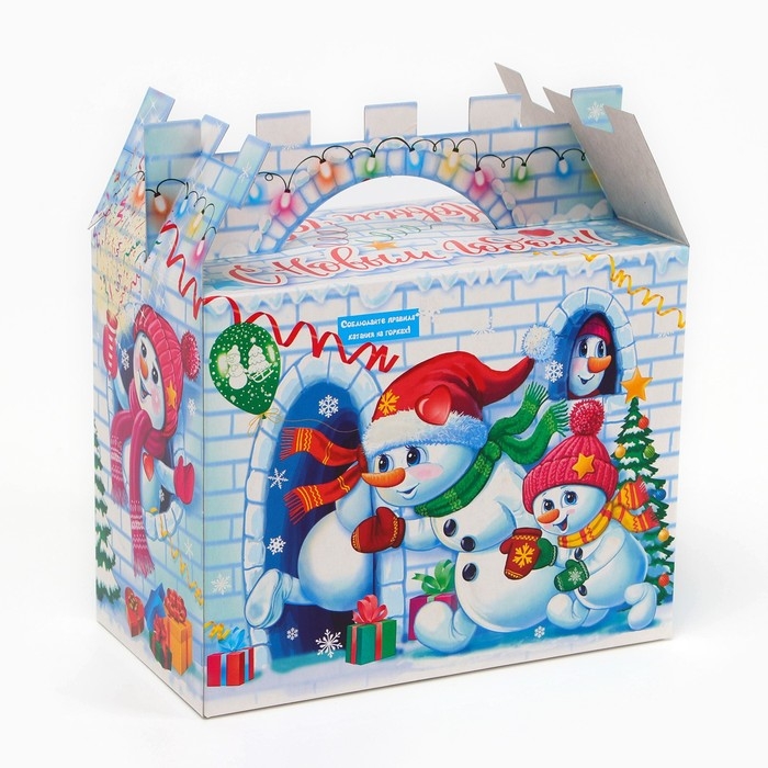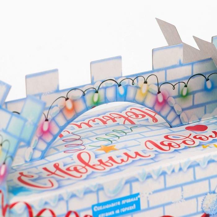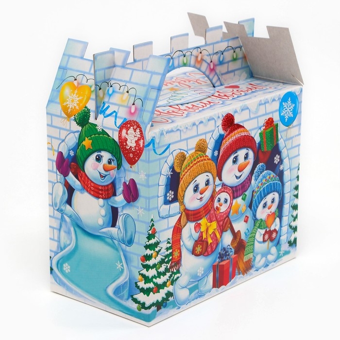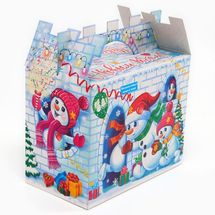 Новый год. Подарочная коробка новогодняя Снежная крепость 15,4 (20,6) х 19,7 х 11,8 см.