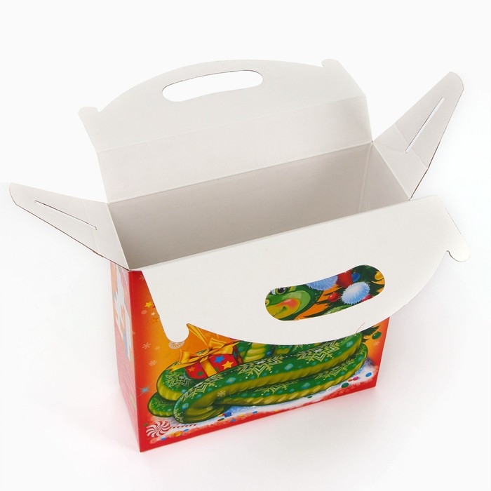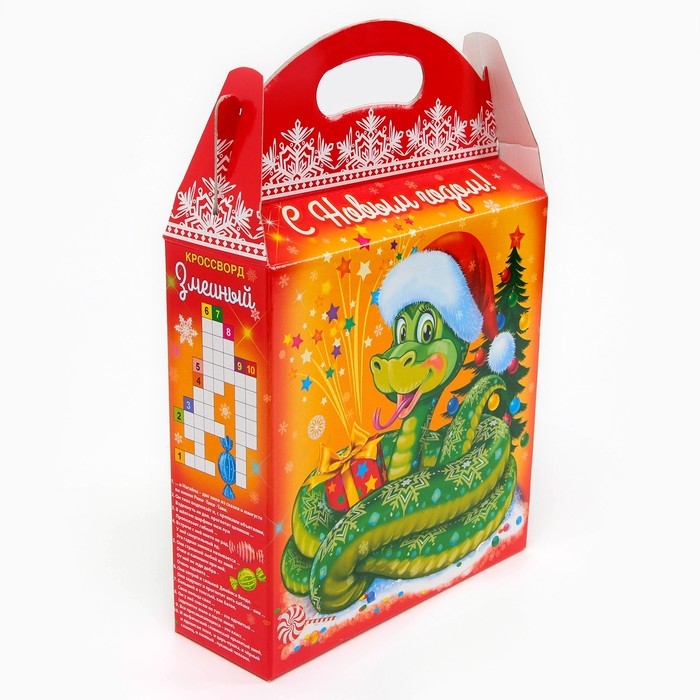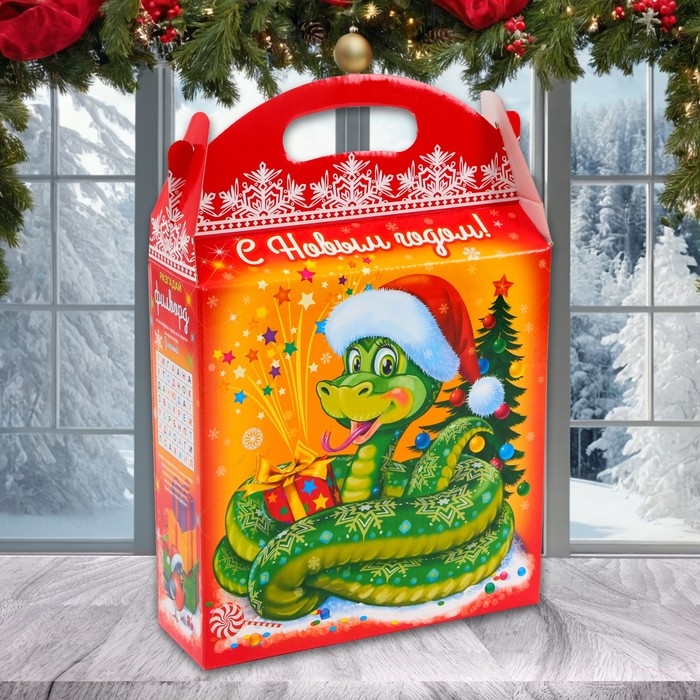 Новый год. Подарочная коробка новогодняя Змейка в шапочке 25,5 (33) х 23,5 х 8 см.