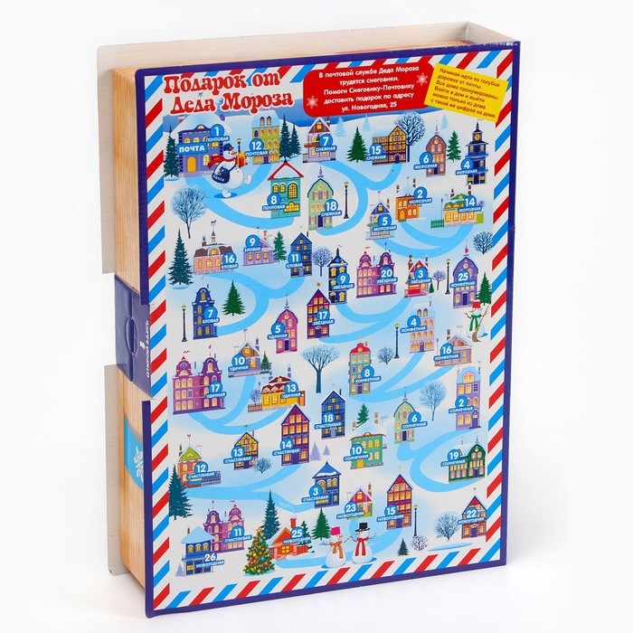 - Коробка выполнена из высококачественного картона, который не только прекрасно удерживает форму, но и гарантирует надёжность и долговечность. Ярко оформленная, она украшена красочными новогодними мотивами. Каждый элемент дизайна продуман до мелочей, чтобы создать ощущение праздника и сказки.
