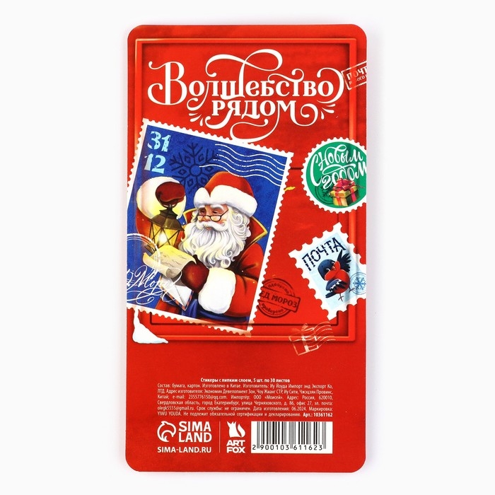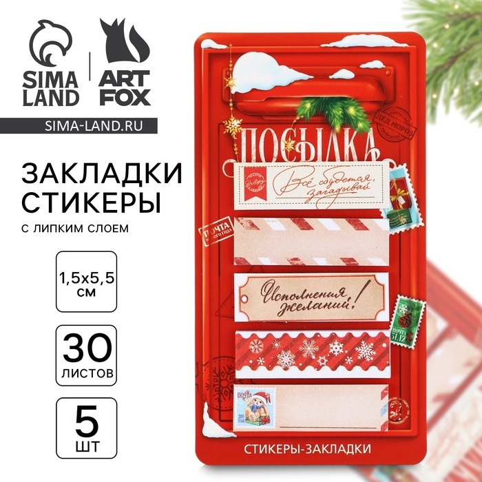 Новый год. Стикеры-закладки «Новогодняя почта. Волшебство рядом», 5 шт, 30 л