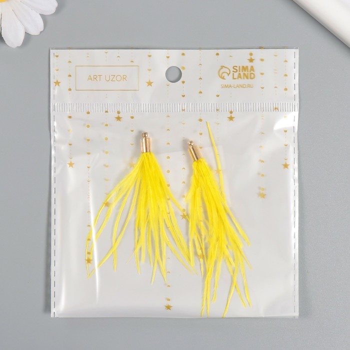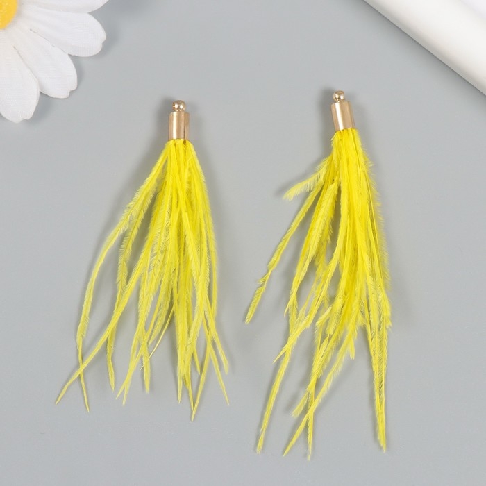 Декор для творчества перо "Кисть Страус" набор 2 шт жёлтый 9х0,5 см