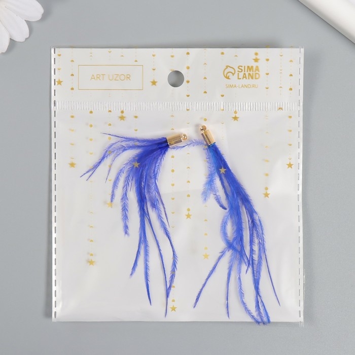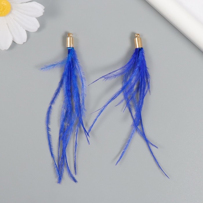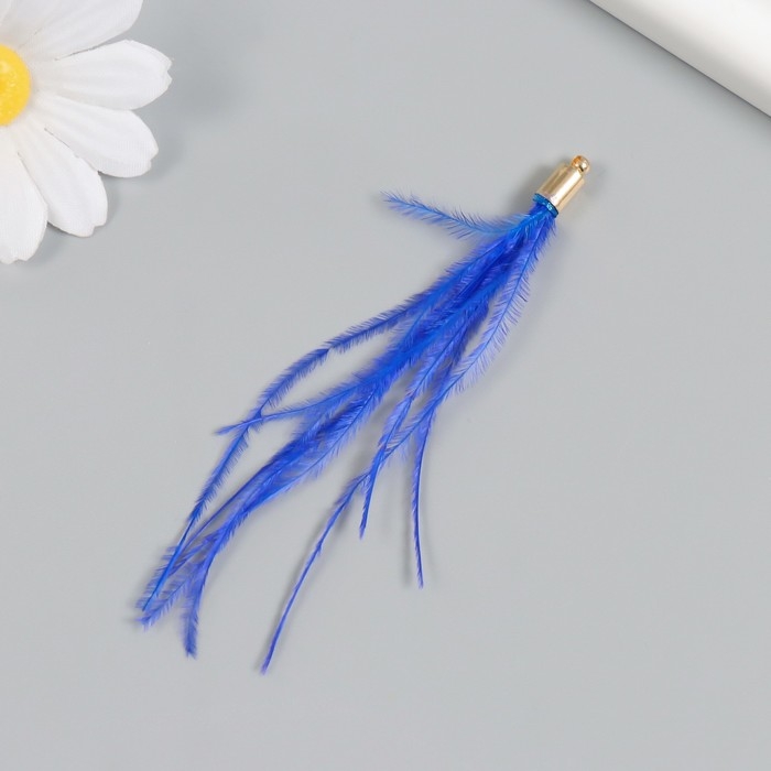 Декор для творчества перо "Кисть Страус" набор 2 шт синий 9х0,5 см