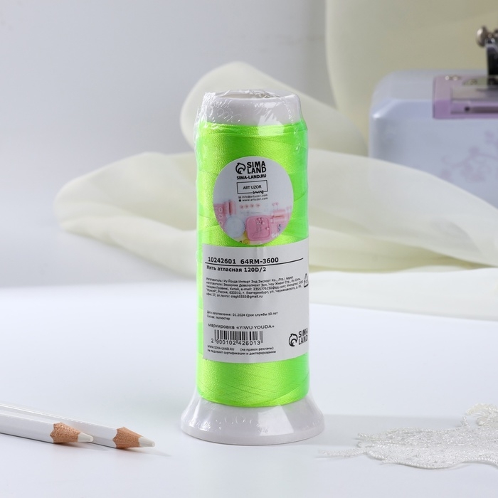 Нить атласная, 120D/2, 700 м, цвет салатовый №644