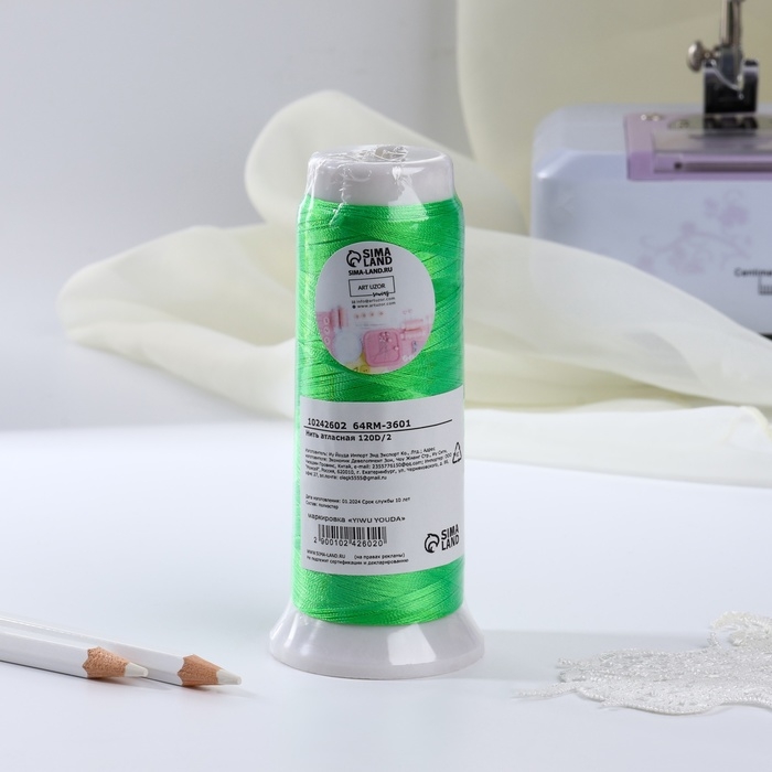 Нить атласная, 120D/2, 700 м, цвет белый