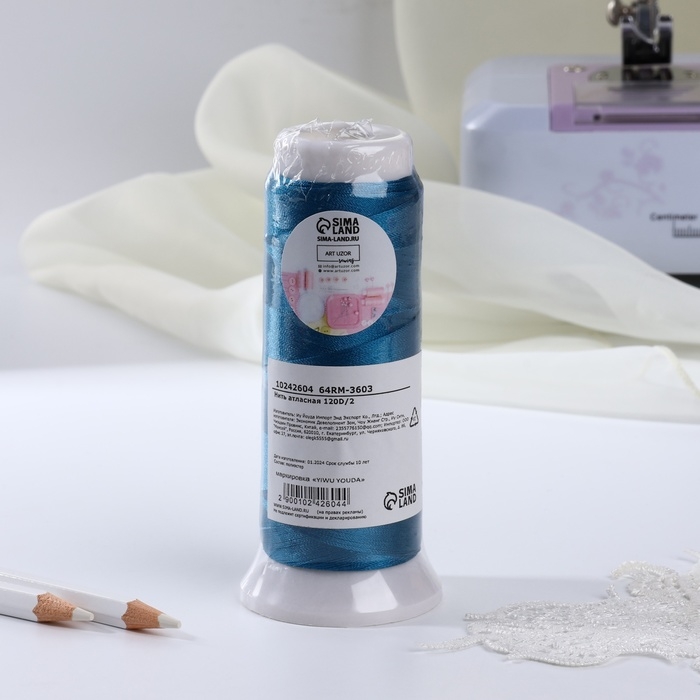 Нить атласная, 120D/2, 700 м, цвет синий №670