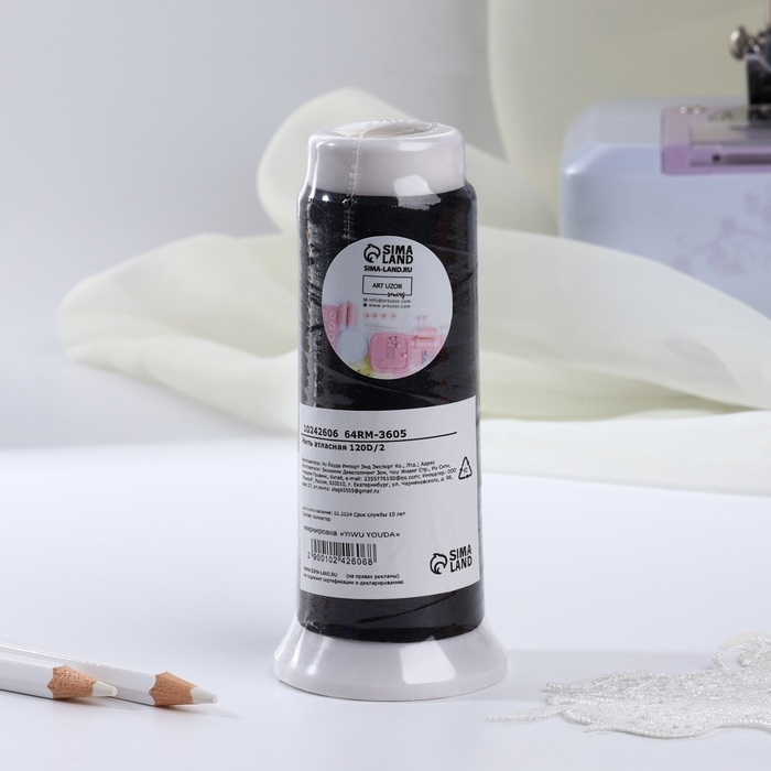 Нить атласная, 120D/2, 700 м, цвет чёрный