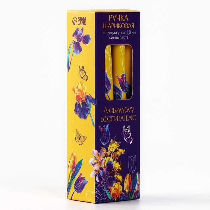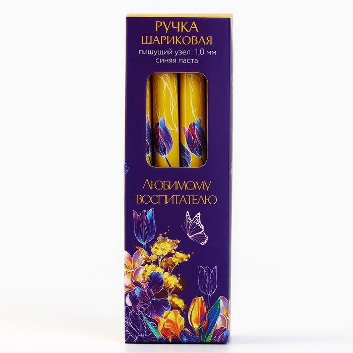 Ручка шариковая синяя паста пластик с колпачком «Любимому воспитателю» 1.0 мм