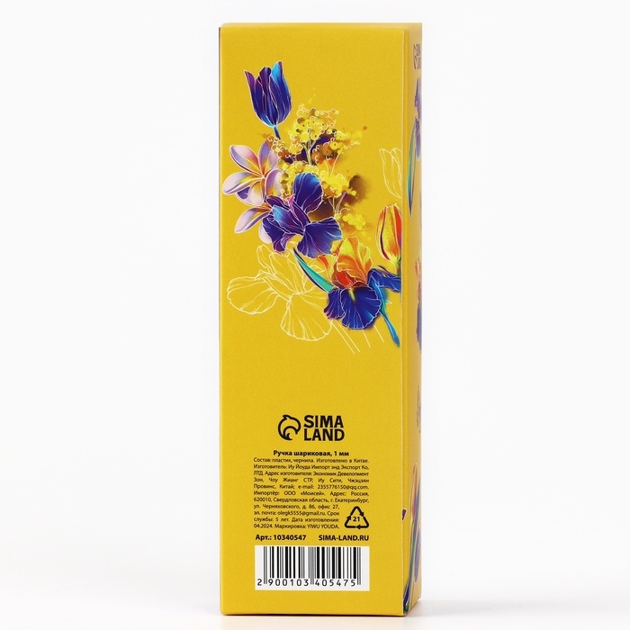 Ручка шариковая синяя паста «Цветок»,пластик, на подложке 8 марта