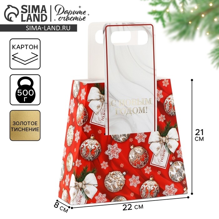 Коробка новогодняя складная с ручками «Новогодние шары» 23 х 8 х 32 см, Новый год