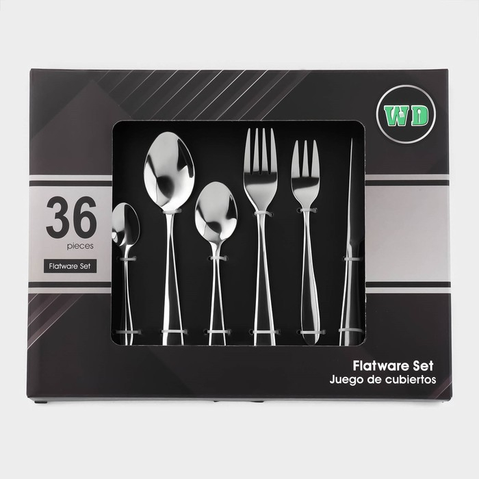Столовые приборы из нержавеющей стали «Стандарт», картонная коробка, толщина 2 мм, 36 предметов, цвет серебряный
