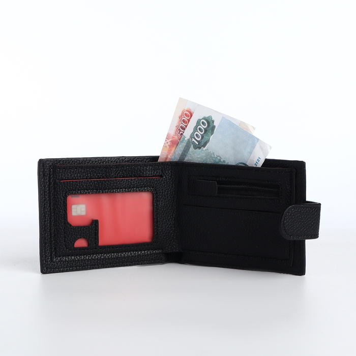 Портмоне мужское на кнопке, отдел для карт, монет, цвет чёрный