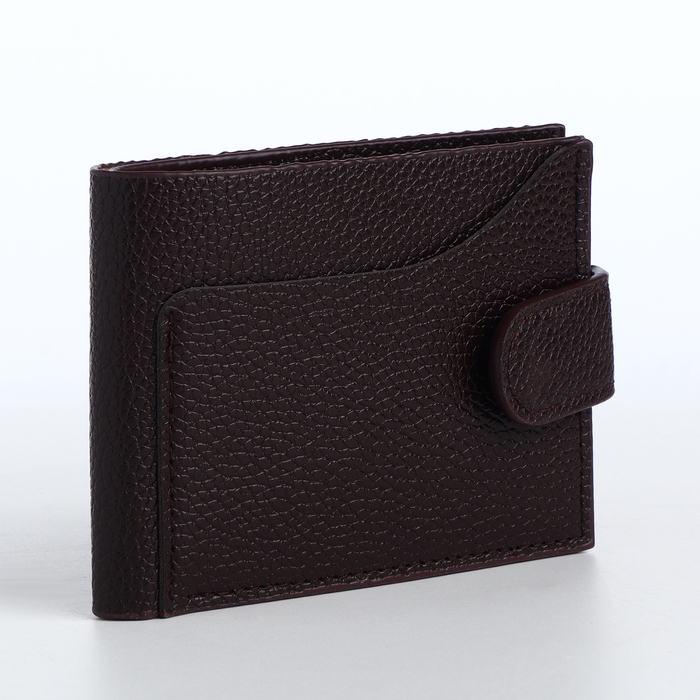 Портмоне мужское на кнопке, отдел для карт, монет, цвет коричневый