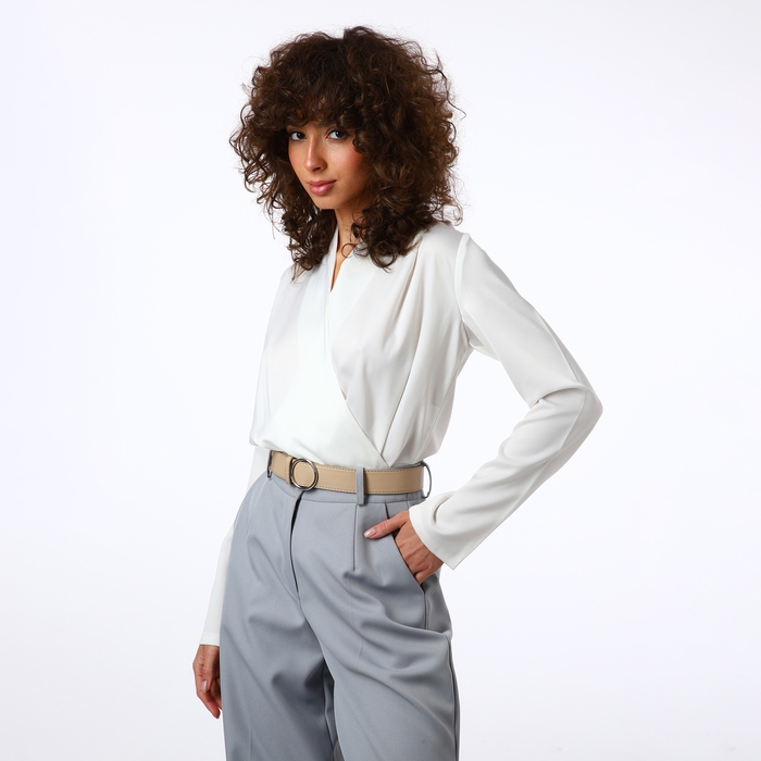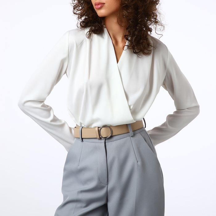 Ремень женский, ширина 3,5 см, пряжка серебро, цвет бежевый