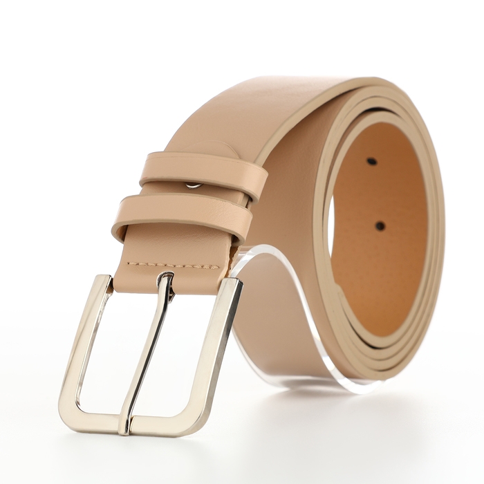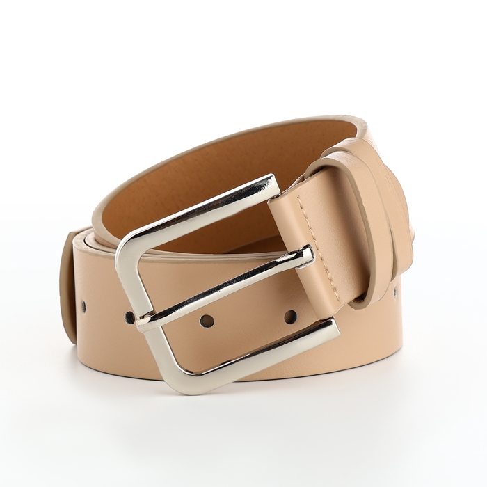 Ремень женский, ширина 4 см, винт, пряжка металл, цвет бежевый