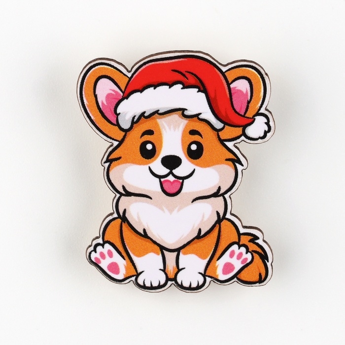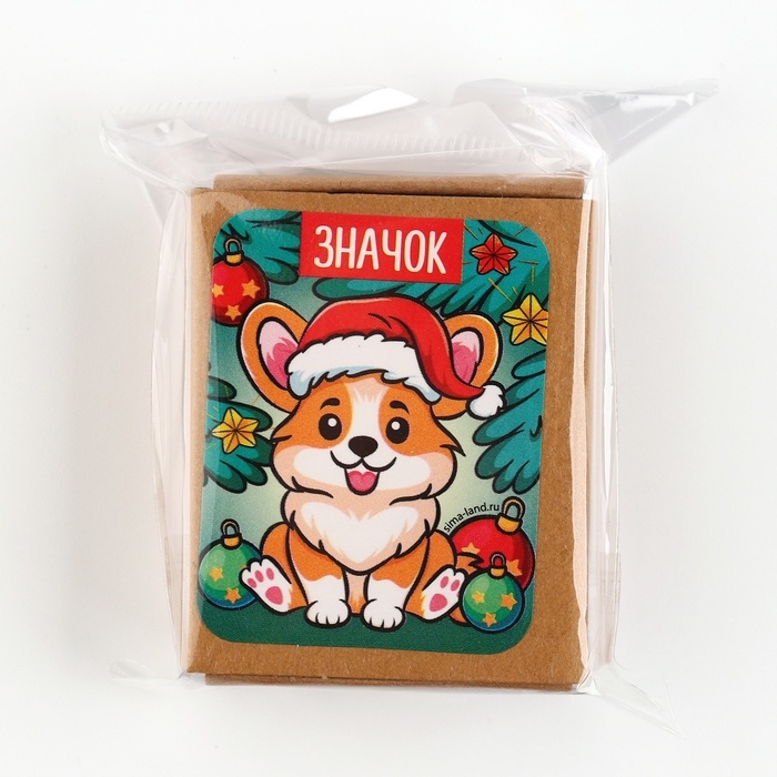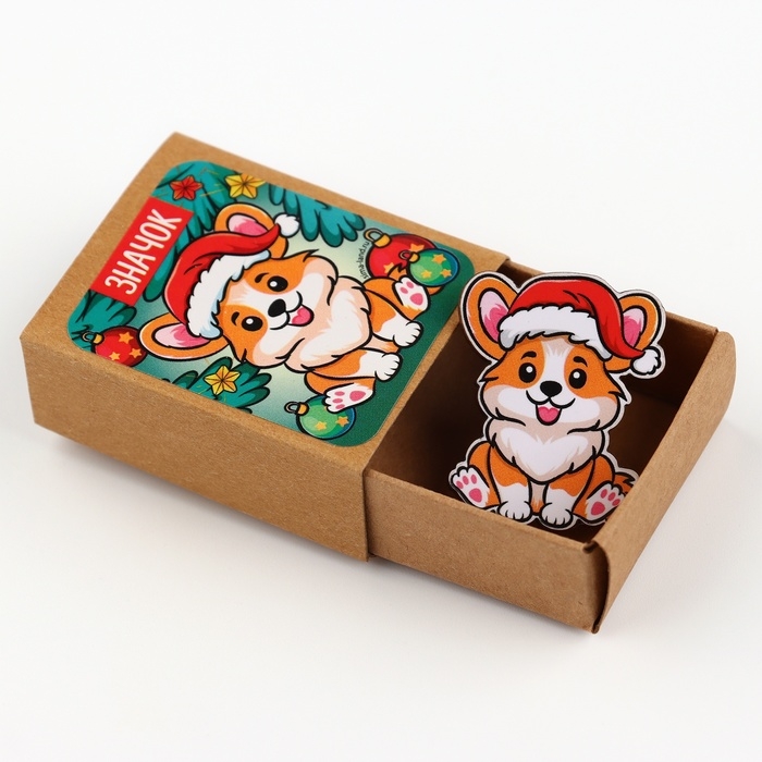 Новогодний значок в коробочке «Новый год: Новогодний корги» 2,7 х 3,3 см