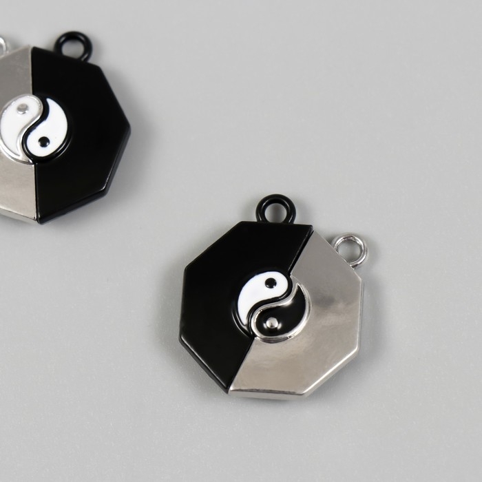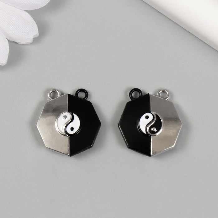 Замок магнитный металл "Инь-ян" чёрный и серебристый 2х2,2х0,5 см (набор 2 половинки)