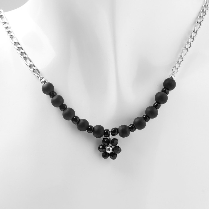 Колье «Цветок» амелия, цвет чёрный в серебре, 45см