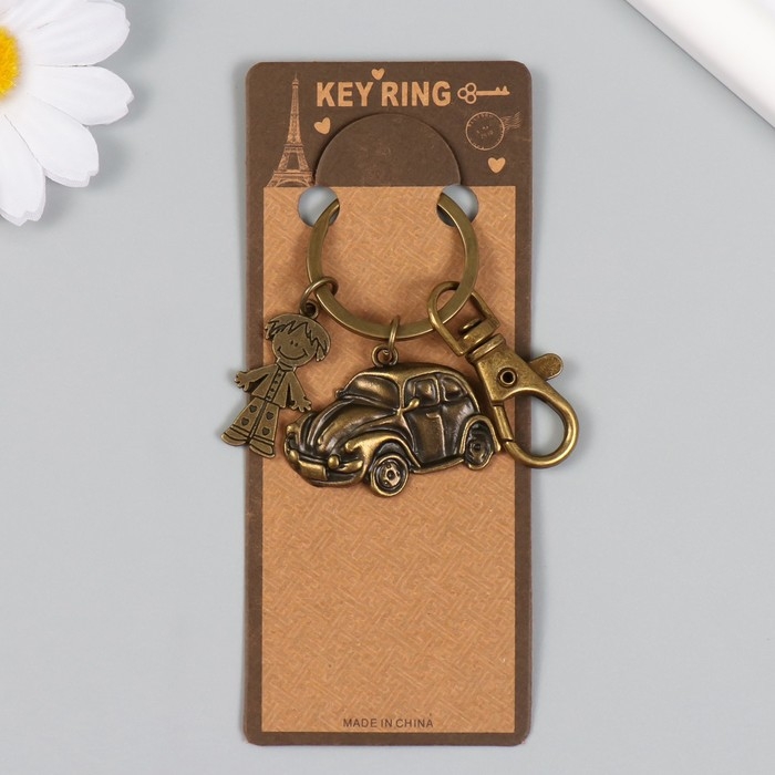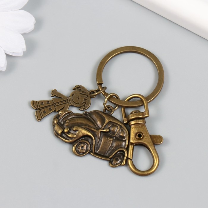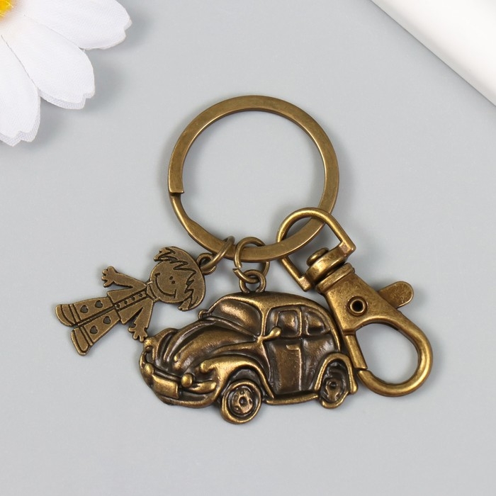 Брелок металл с карабином "Мальчик и автомобиль" бронза 6 см