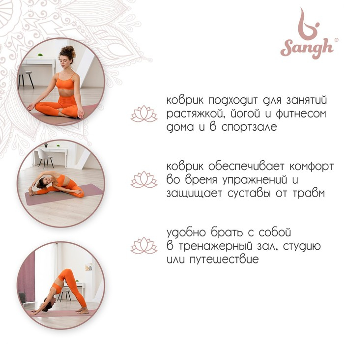 Коврик для йоги Sangh, 183×61×0,6 см, цвет фиолетовый