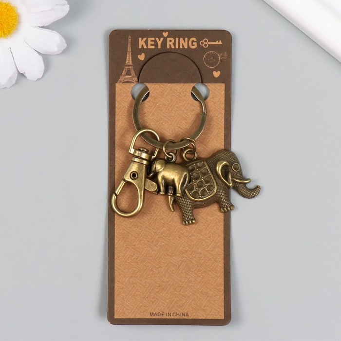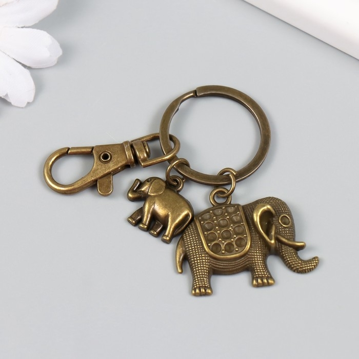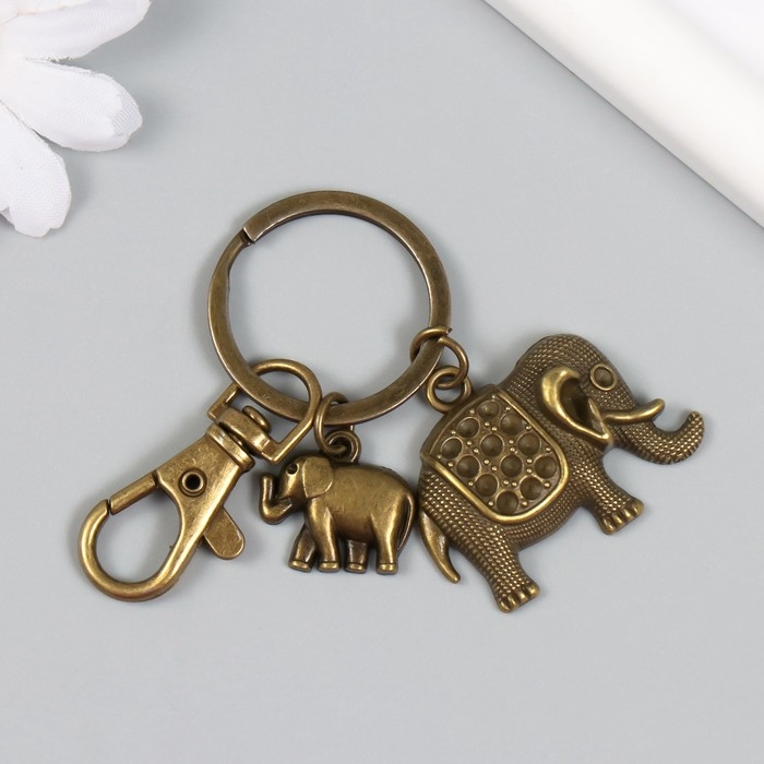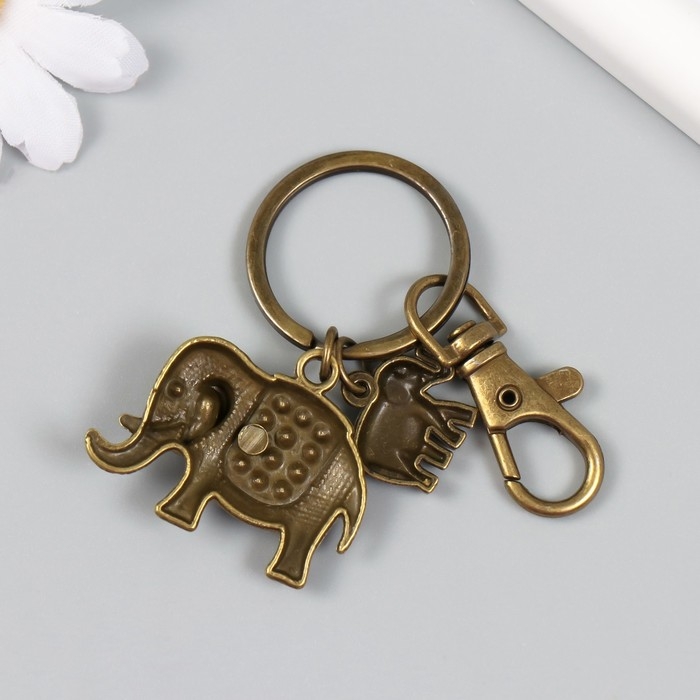 Брелок металл с карабином "Слоны" бронза 6,5 см