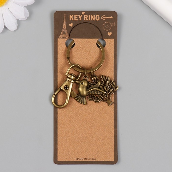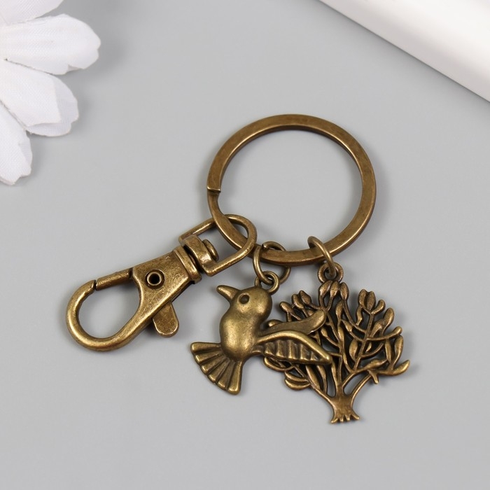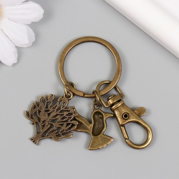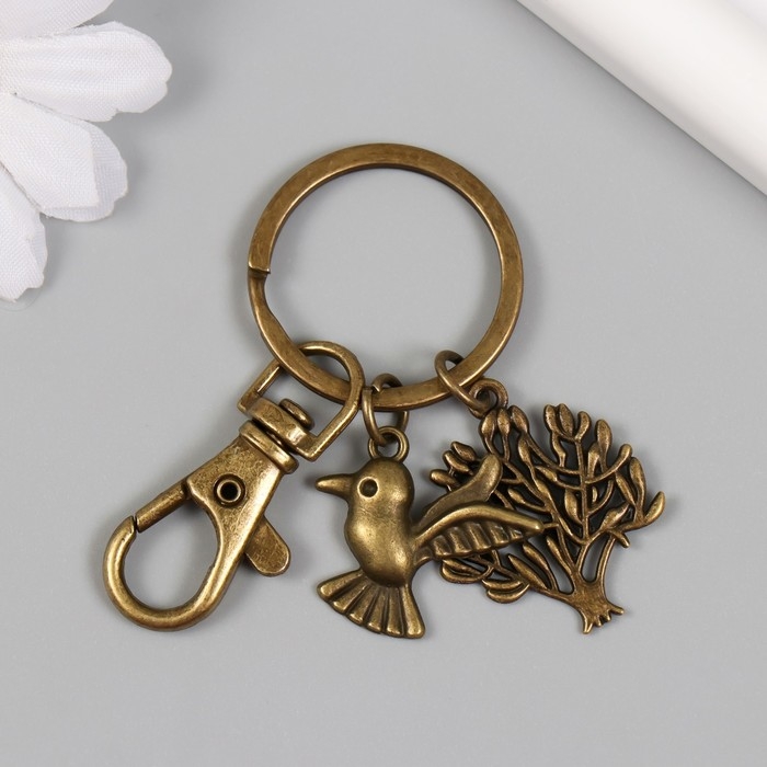 Брелок металл с карабином "Птица и дерево" бронза 6,2 см