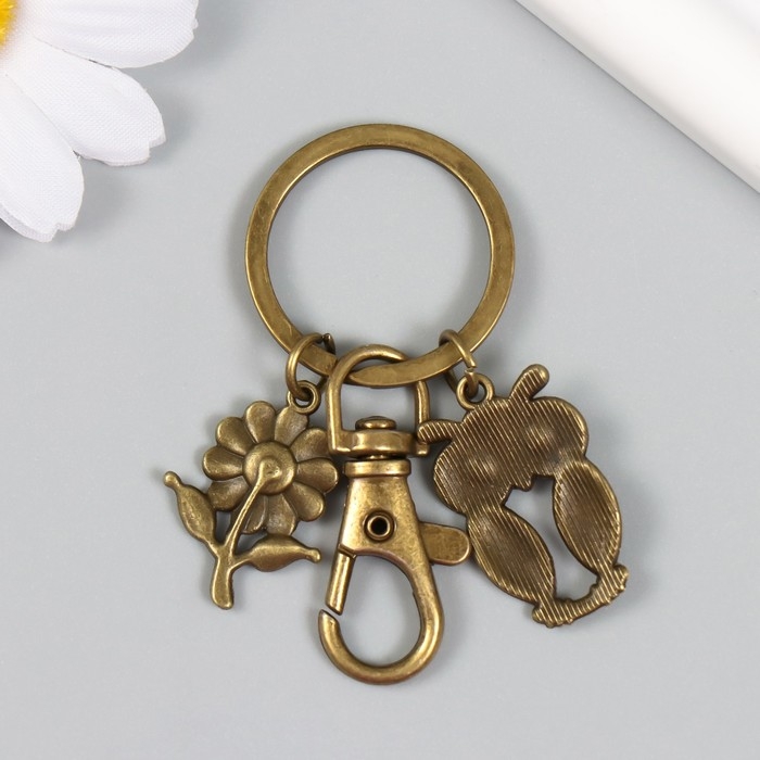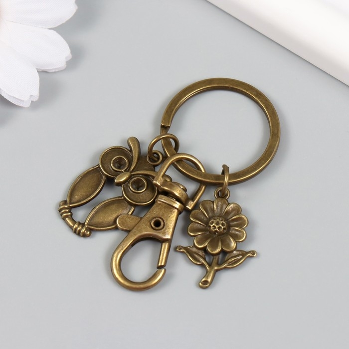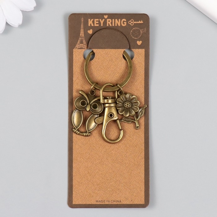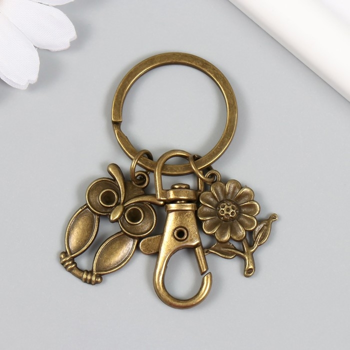 Брелок металл с карабином "Филин и цветочек" бронза 6 см