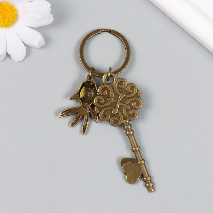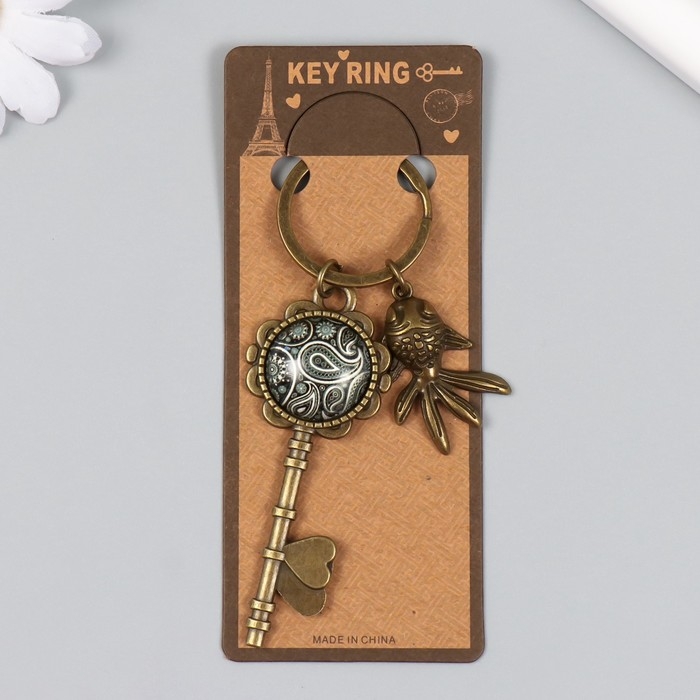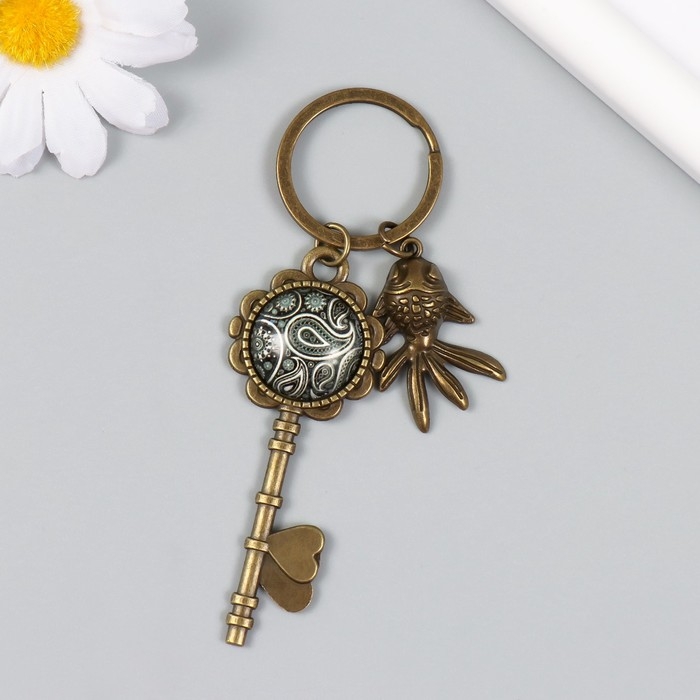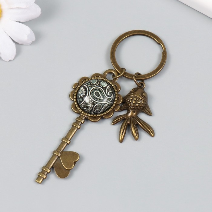 Брелок металл, стекло "Рыбка и ключ с восточным рисунком" бронза 10 см