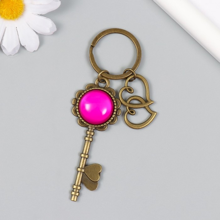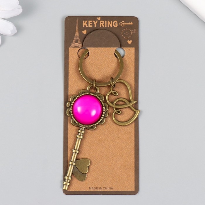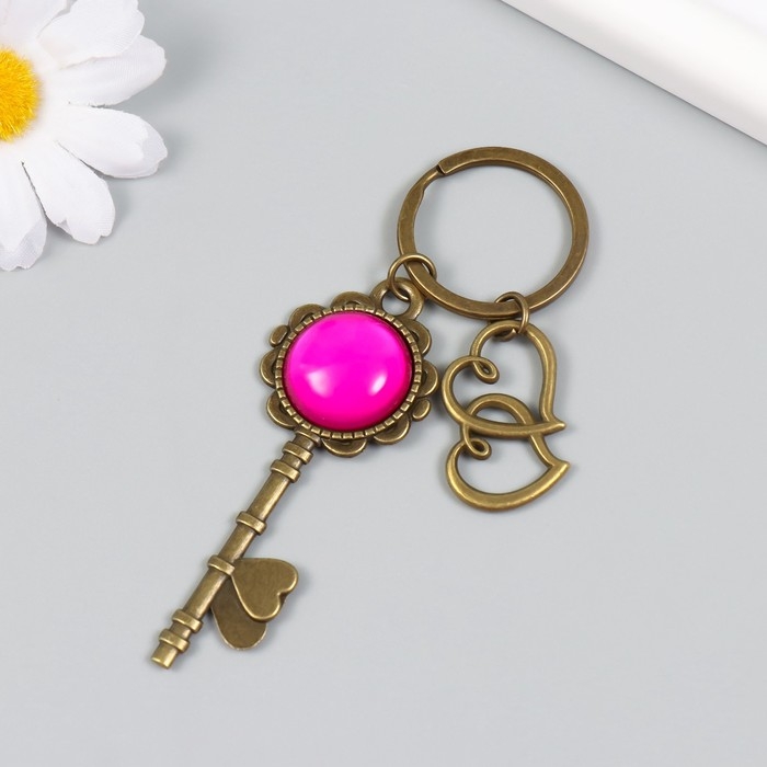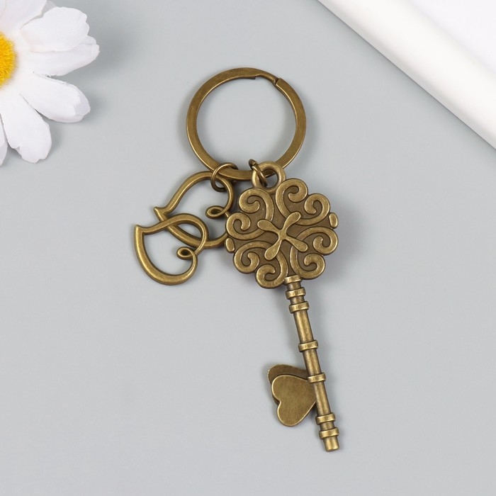 Брелок металл, стекло "Двойное сердце и ключик" бронза 10 см