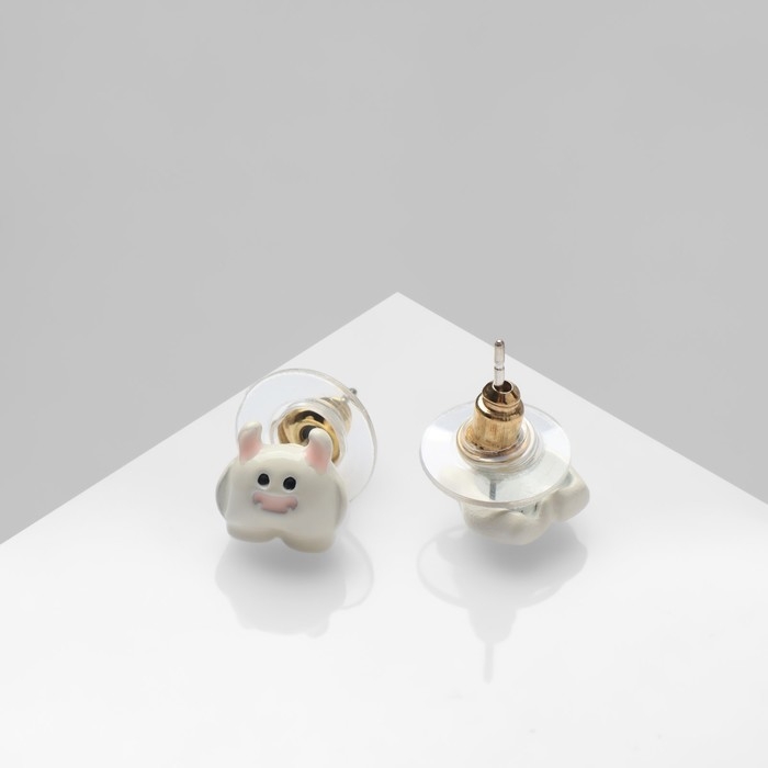 Серьги с эмалью «Монстрики» йети, цвет белый