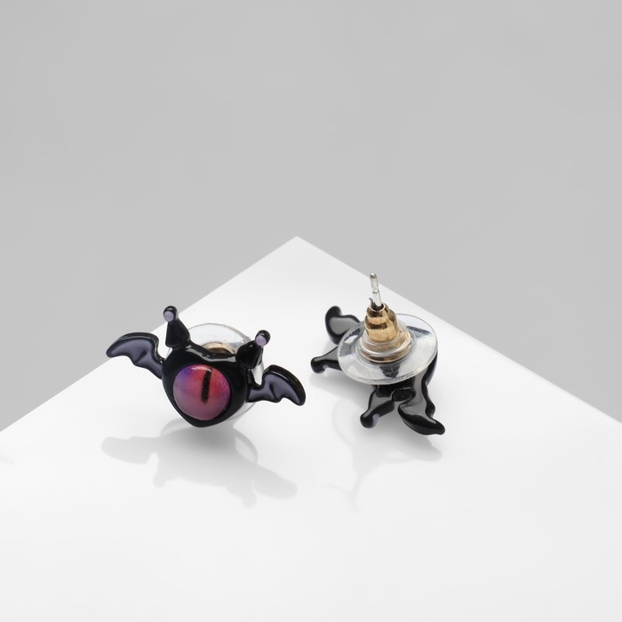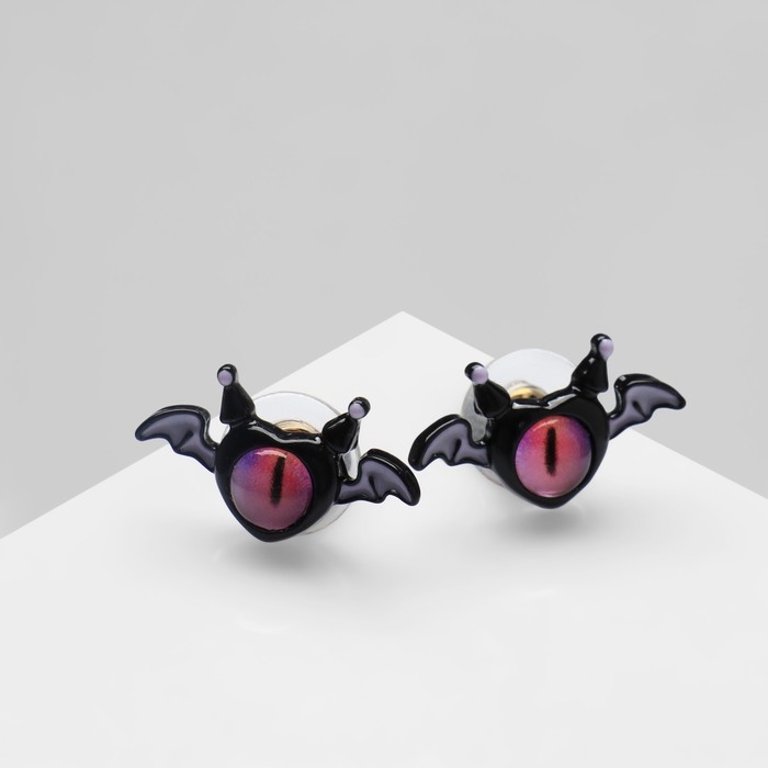 Серьги с эмалью «Монстрики» с крылышками, цвет чёрно-розовый