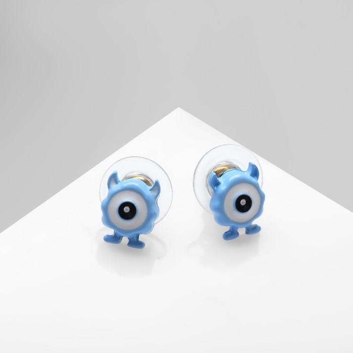 Серьги с эмалью «Монстрики» с рожками и ногами, цвет бело-голубой