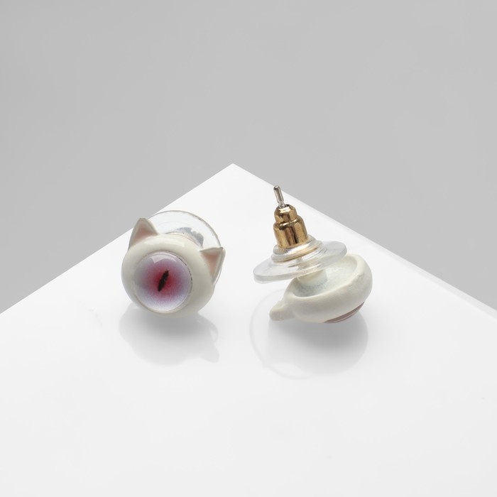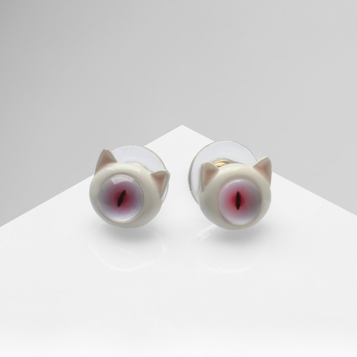 Серьги с эмалью «Монстрики» с ушками, цвет бело-розовый