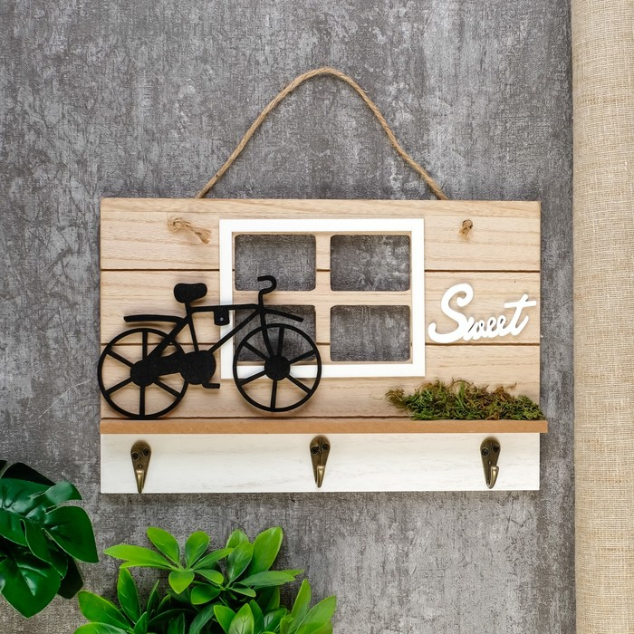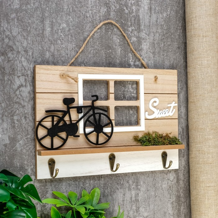 Крючки декоративные дерево "Велосипед на лужайке у дома" 20х2,5х30 см