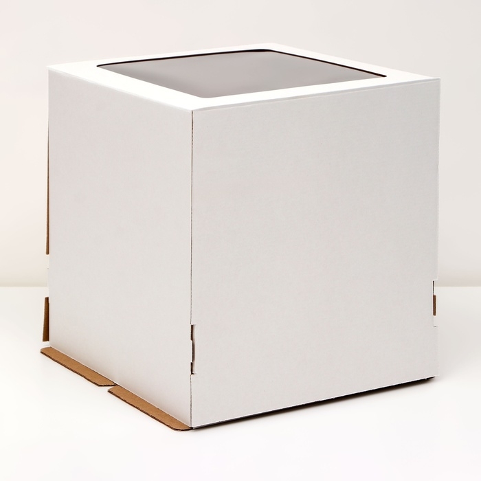 Коробка под торт, белая, с окном, 18 х 18 х 22 см